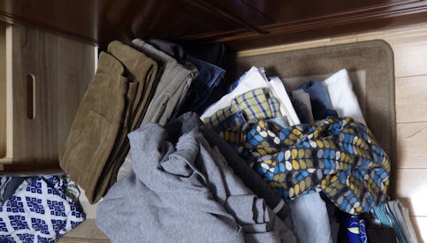 タンスの中の服のチェックして、キレイに入ってるけど、