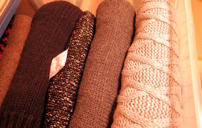 厚みがバラバラのセーターも 幅や高さを揃えて収納が可能に。。