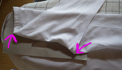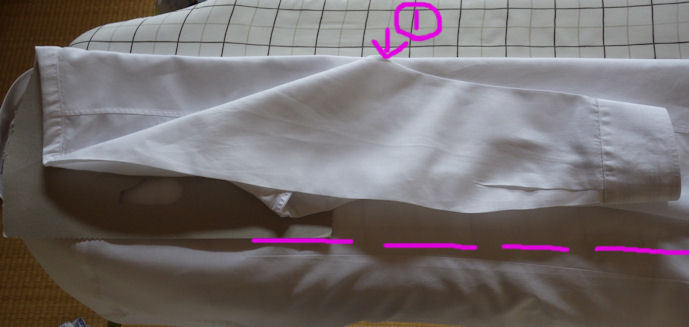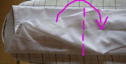 肩と脇の縫い目にそって 袖を折り
