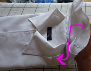だいたいのYシャツはキレイに袖がたためます。