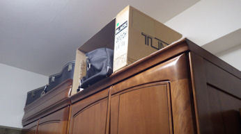 手前の箱は 主人の通勤カバン 冬用が入ってて