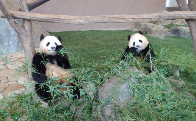双子パンダ。めちゃめちゃ笑顔で笹食べてます ^m^