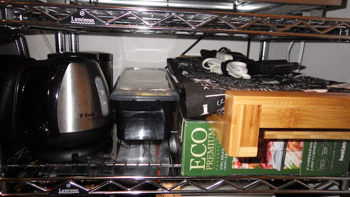 手前に オーブン・トースターのトレーを入れたファイルボックス