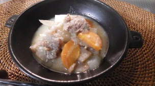 【根菜たっぷり牛すじ肉の白みそ煮込み】
