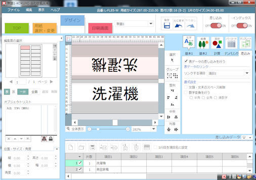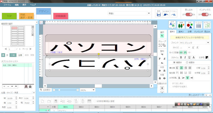 このソフトが無料で 簡単にラベル・インデックスや名刺など作れて便利です。