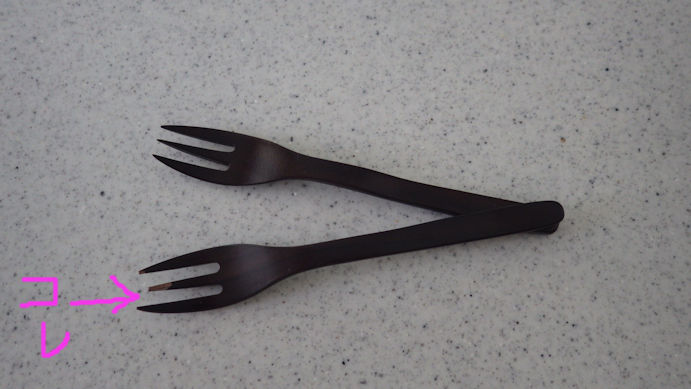 木のフォーク。朝に使おうとしたら 欠けてました(T_T)