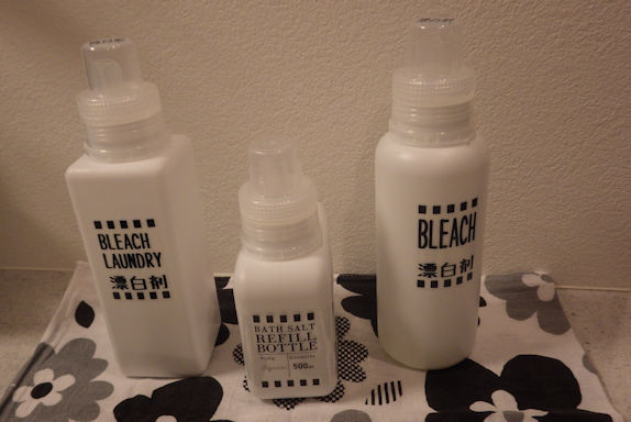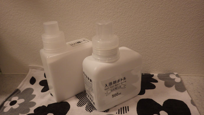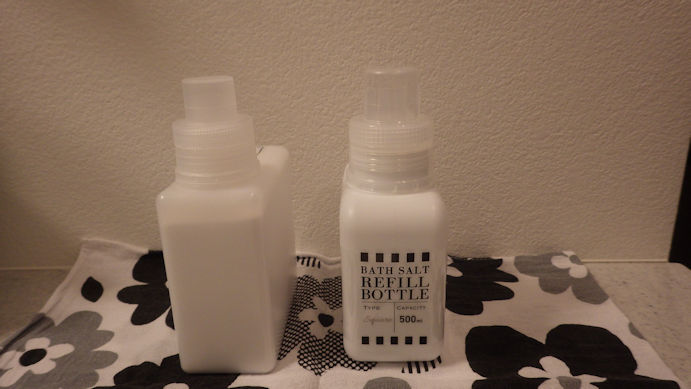 左が 無印の入浴剤ボトル。