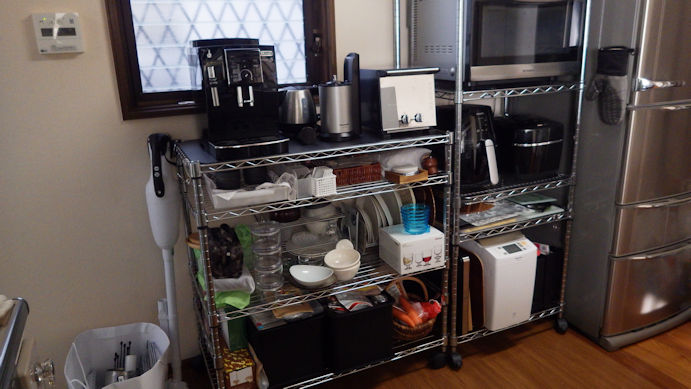 使う食器の一部を出して システムラックに収納中