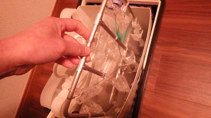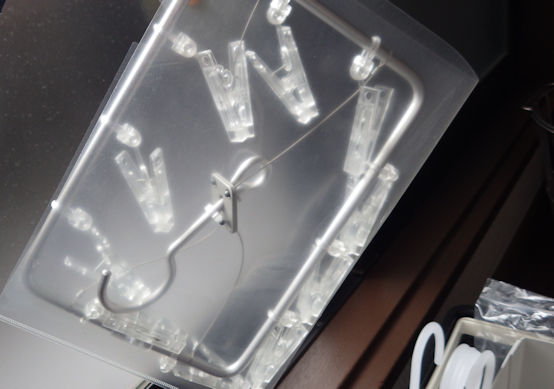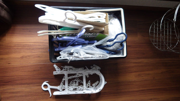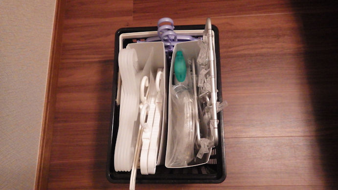 カゴの手前 ピンチハンガーはセリアのモノ。