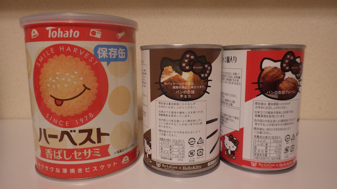 保存食として 缶詰のパンとビスケット。