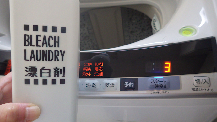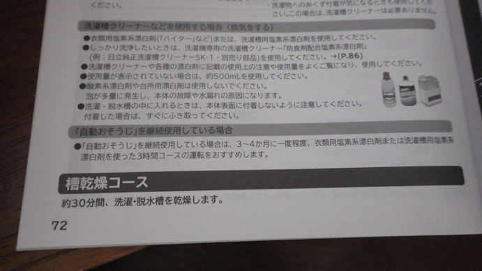 取説に書かれていた通りに 塩素系の漂白剤を投入して 3時間コースでお掃除開始。