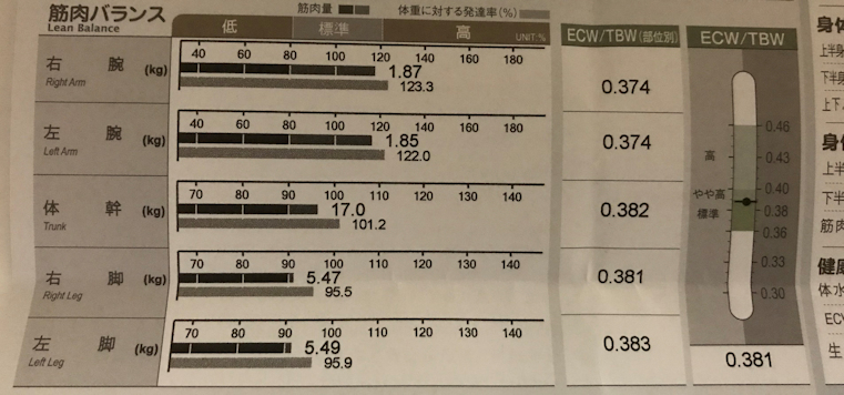 測定してくれたスタッフの方に驚かれた腕の筋肉量。爆