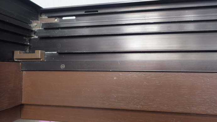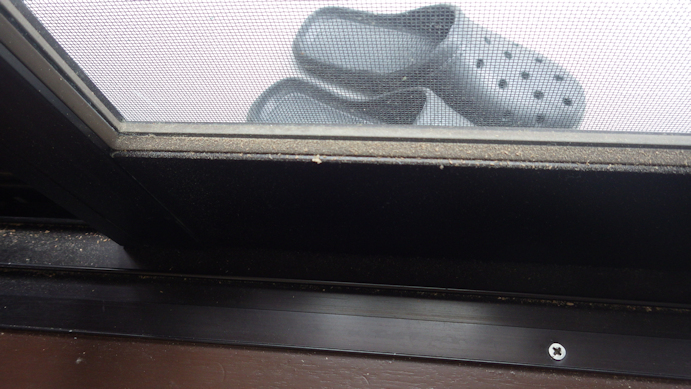 サッシや窓のちょっとした 段差にもびっしりと木くずが・・