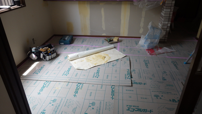 今日でクロスの張替え、システムキッチンの水道・電気工事が終わり