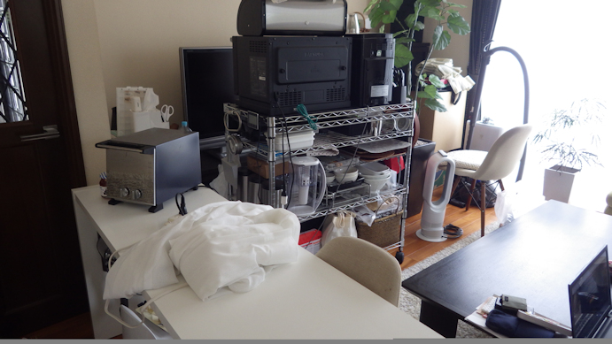レンジ台・冷蔵庫も予定の位置へ設置され