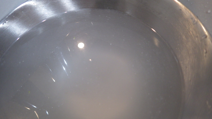 最初に粉を入れた時より 濁りが出て 油の様なモノが増えてます。