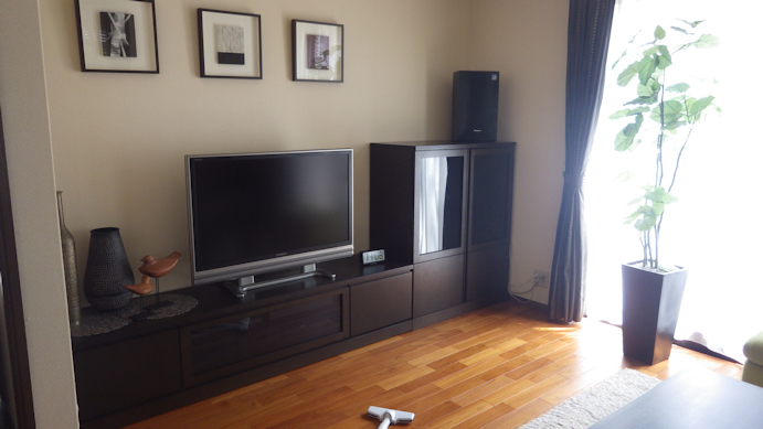 リビングの収納棚から出していた アルバムやお酒も無事に戻しました。