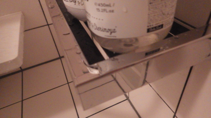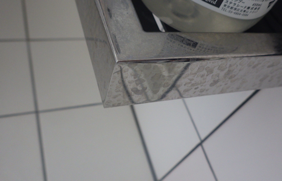 取り付けた棚は ココは硬水?って思う位に金属が変色するくらいの水アカの跡。