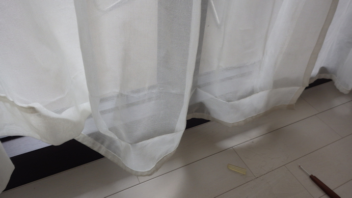 今日の【1日1ヶ所】は「カーテンのミシン目解き」