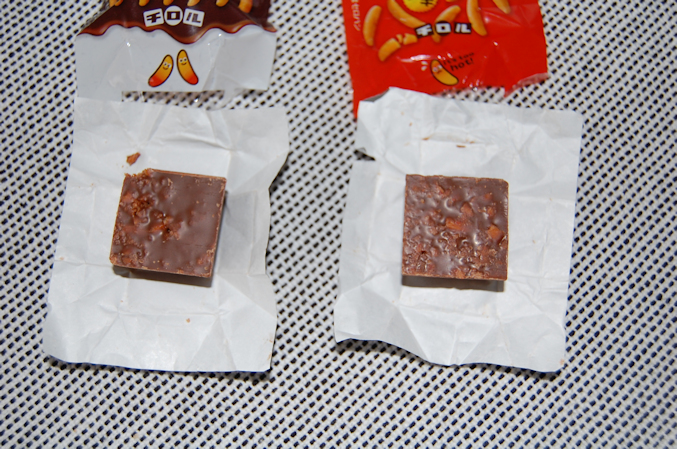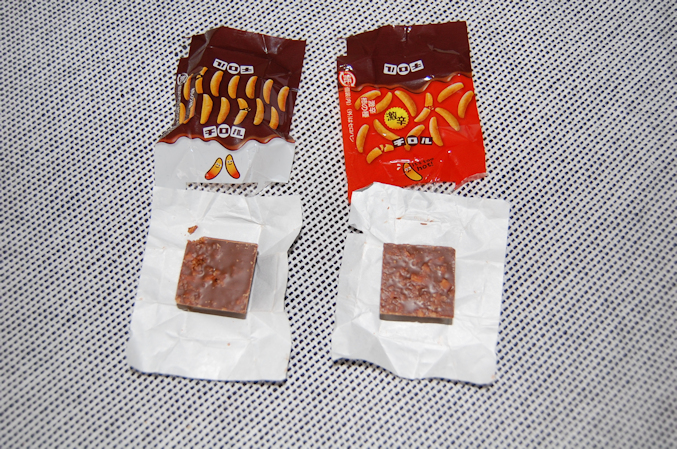 袋から出すと 個別包装されたチロルチョコ。