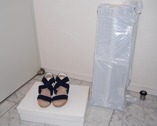 34/100は サンダル。昨日ブーツを処分したのでブーツの箱を捨てようとしたら