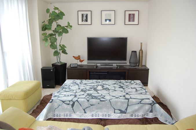 このテーブルクロスは、こたつにも使えるサイズ♪