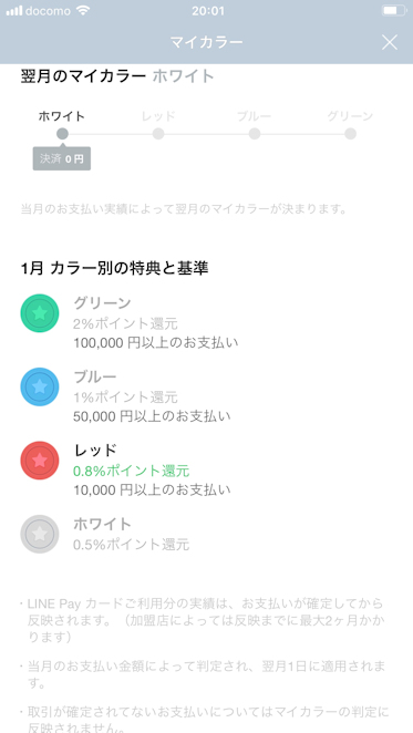 当月の支払い実績により還元ポイント率が、かわります。
