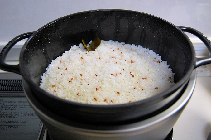 バーミュキュラで初めてご飯を炊いた時の写真。