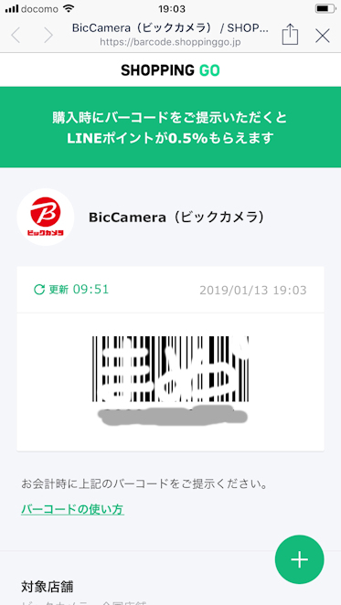 先ほどのビックカメラのポイントカードとは別に、お買い物金額に応じて0.5%のLINEポイントが貰えます。