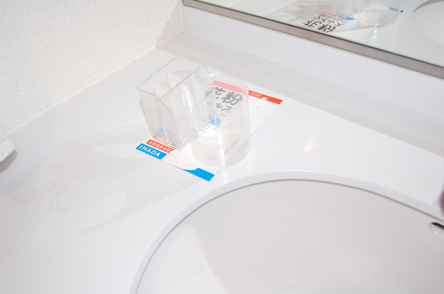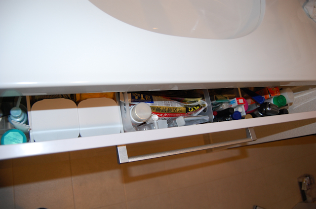 洗面所の引出の中身を出して