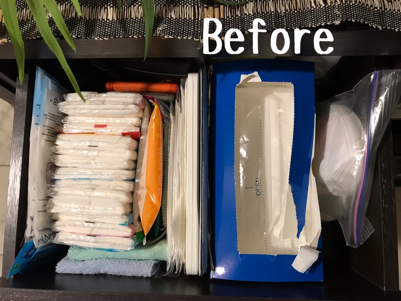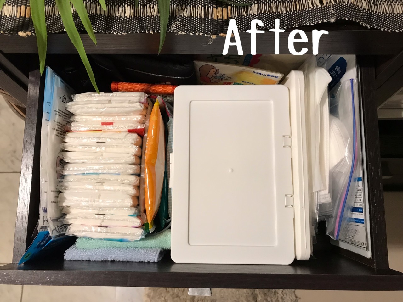 マスクケースや個別包装されているマスクを右側に移動してマスク収納が完成!