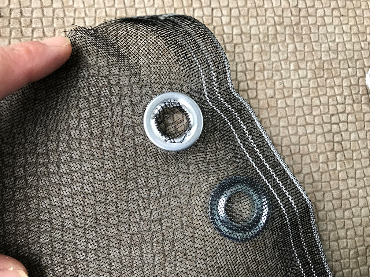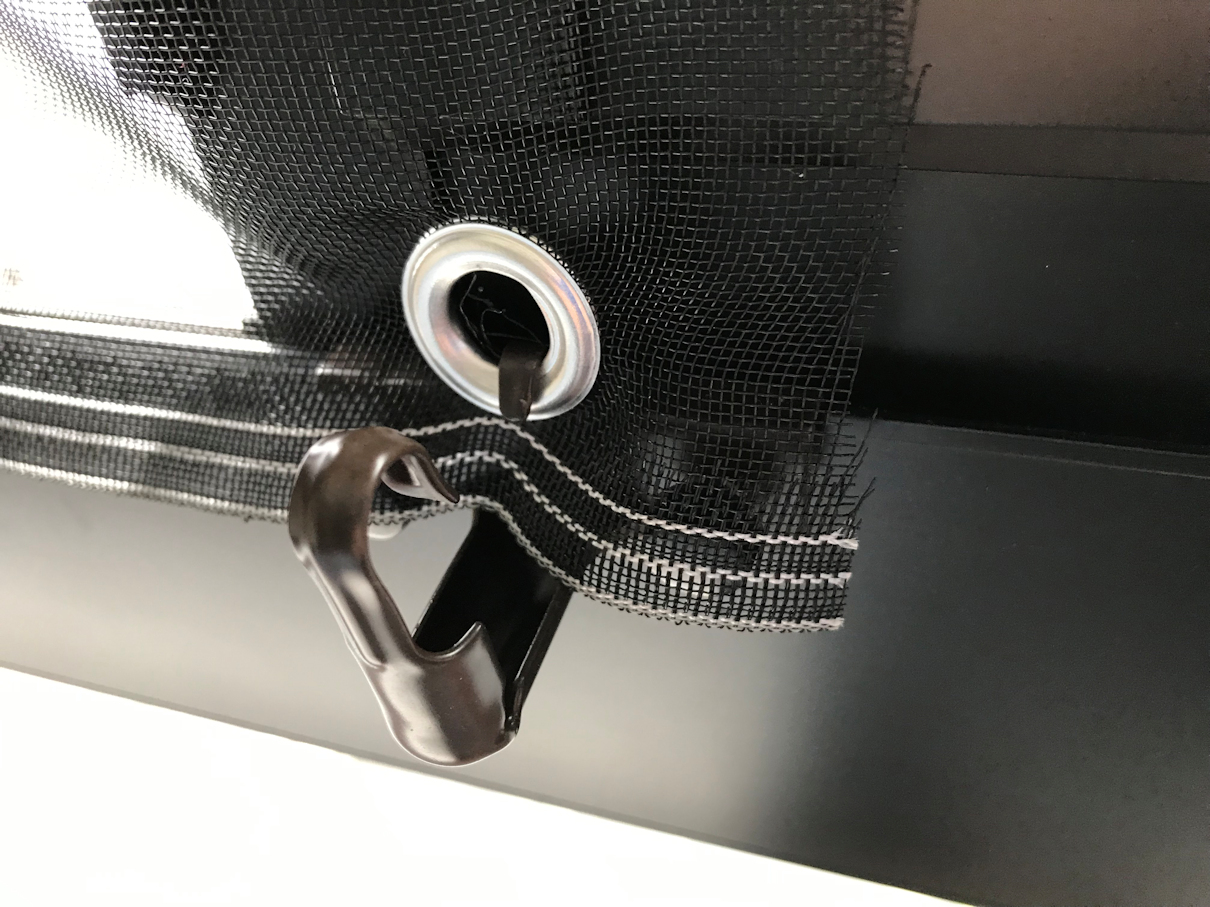 窓の開閉に問題が無かったので、ハトメを設置した網を取り付け。