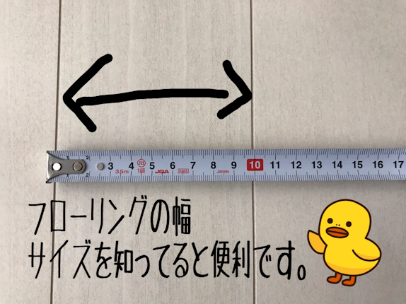だいたいのサイズ感を知るのに、フローリングの幅のサイズ覚えておくと便利です。d( ̄  ̄)