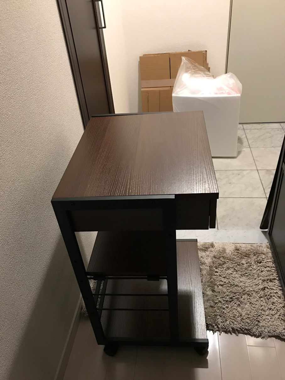今後も使える様に、机の横に置けるサイドラックやプリンター用のラックを探すことにして