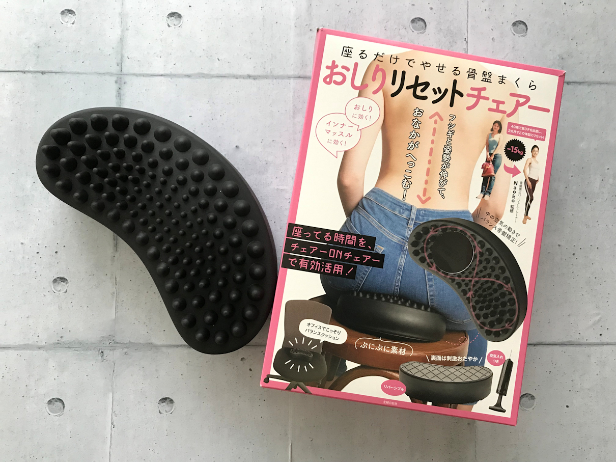 「おしりリセットチェアー」を実際に試しながらエクササイズ。