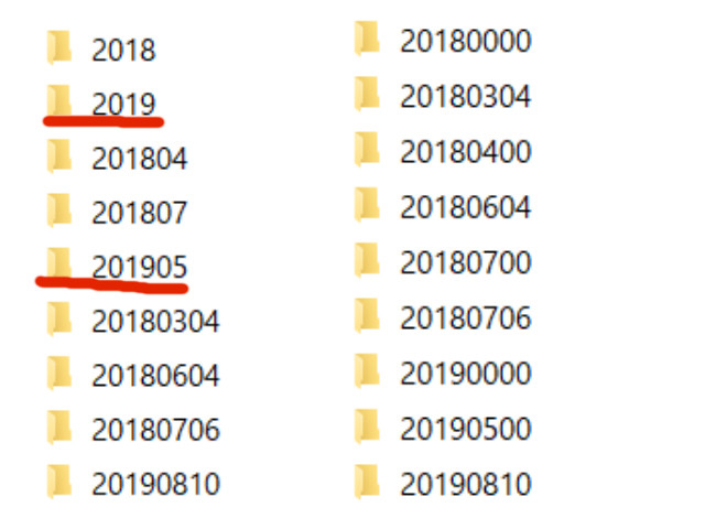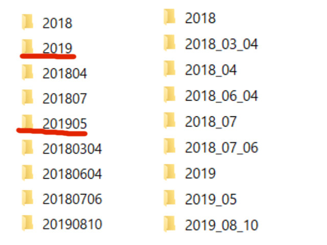 年数のフォルダを作り、その年数の中に月のフォルダ