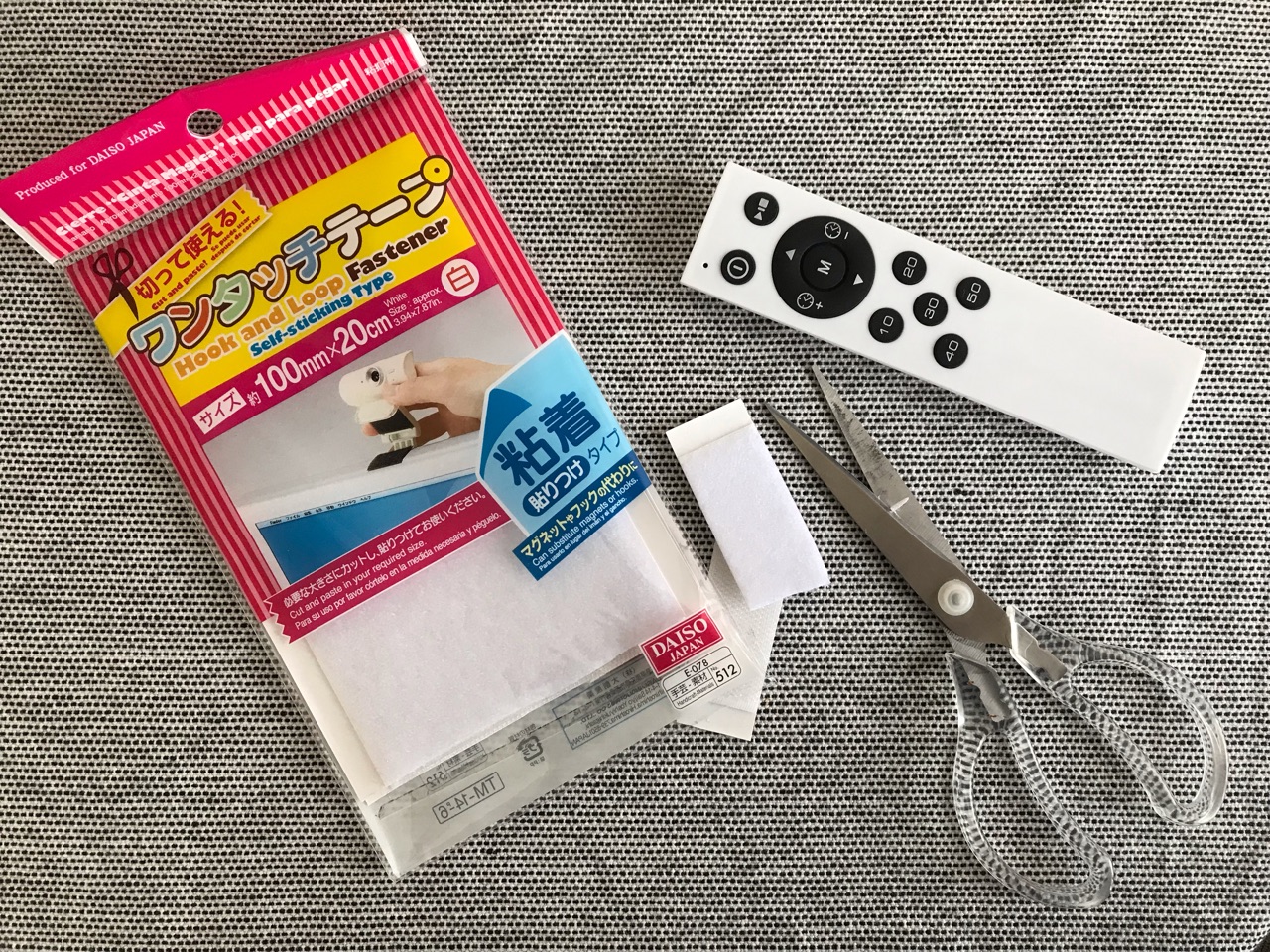 以前にリモコン置き場所を作った時と同じ100均のワンタッチテープを使って
