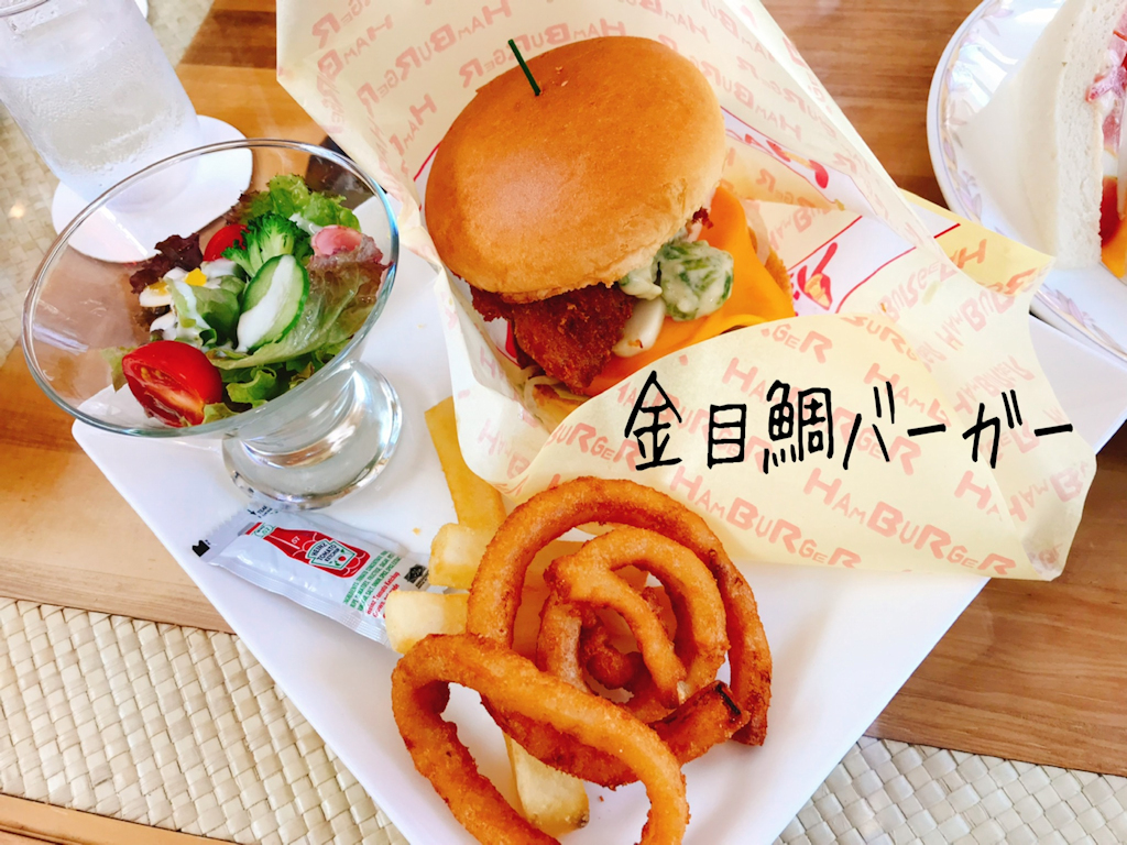 ホテルで「金目鯛バーガー」を食べながら