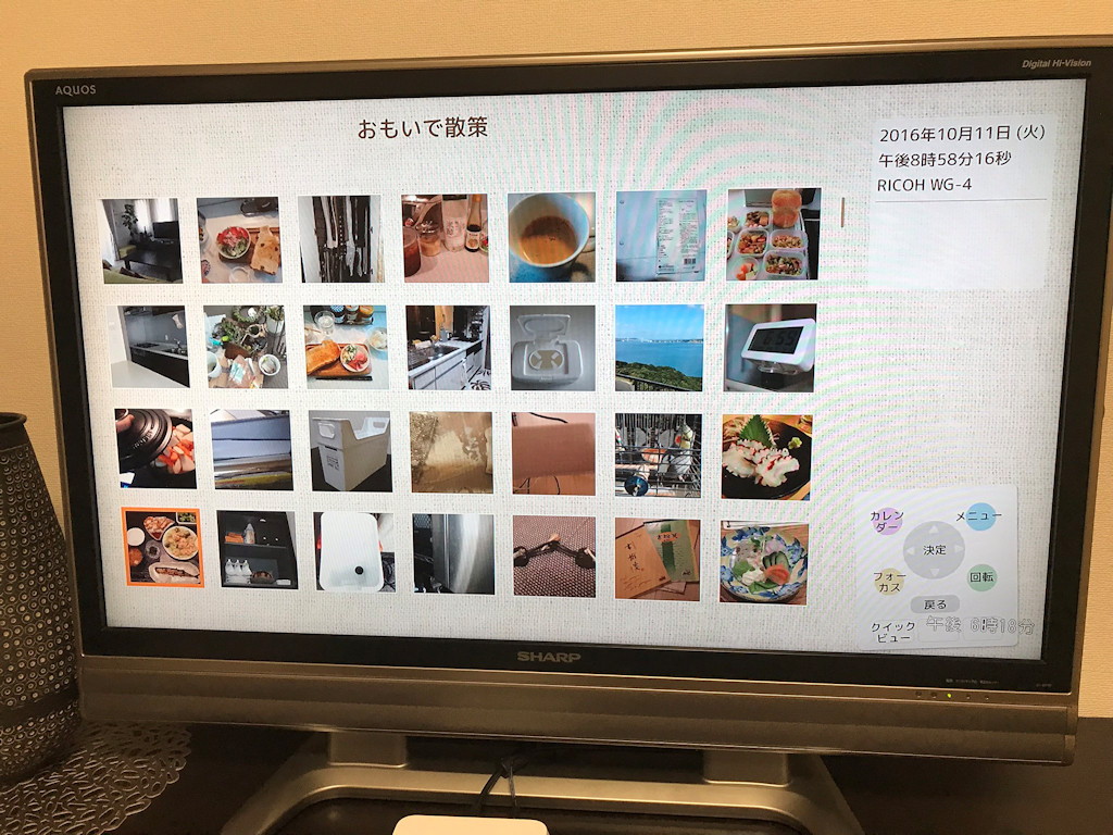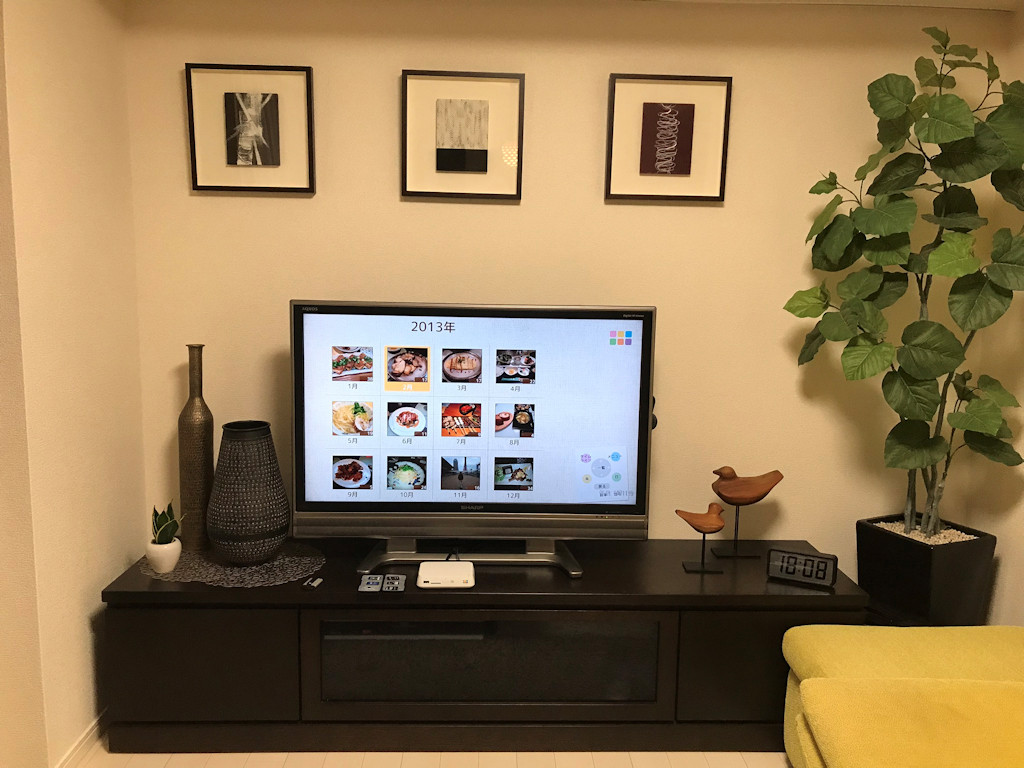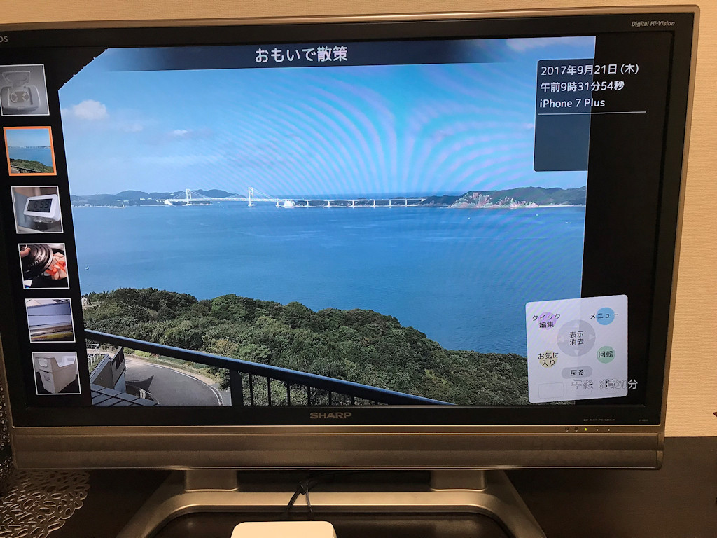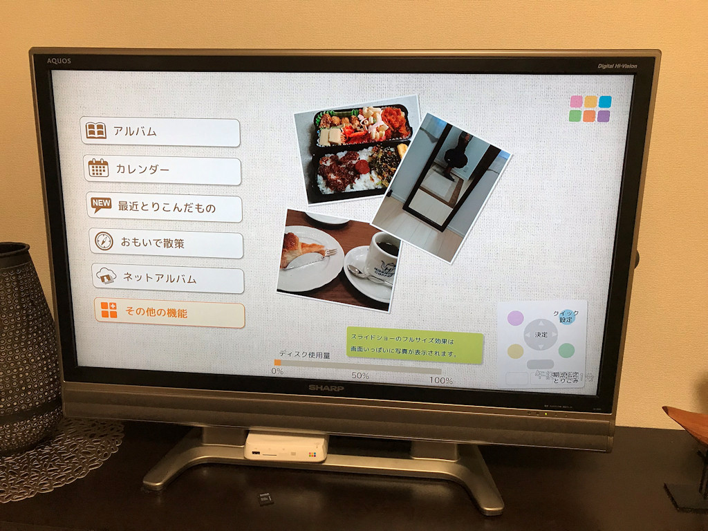 テレビ画面で表示されるので、懐かしい写真を家族で楽しんだり、