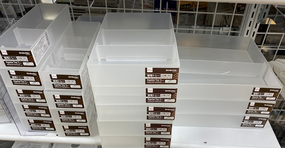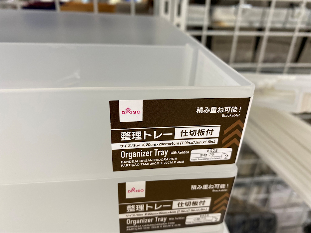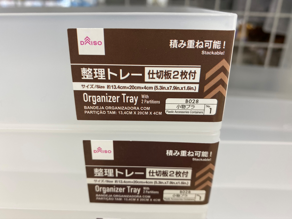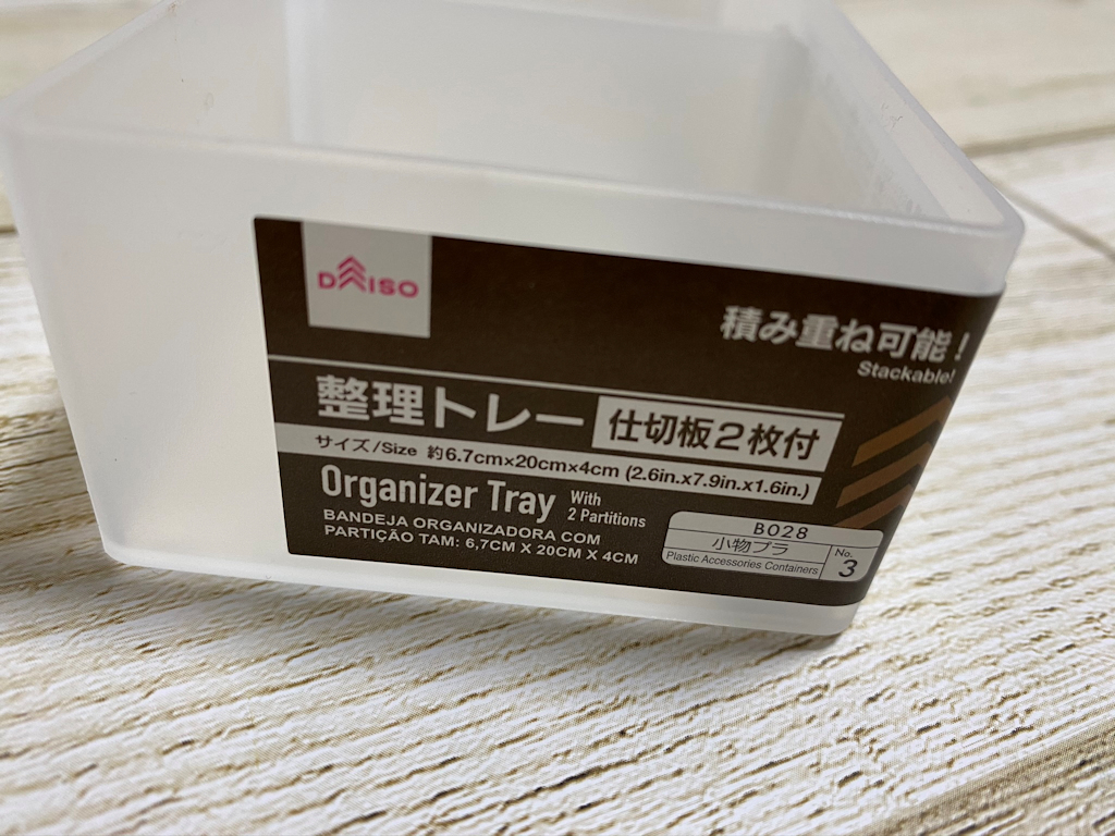 ダイソー「整理トレー」仕切板2枚付で積み重ね可能!