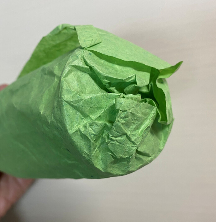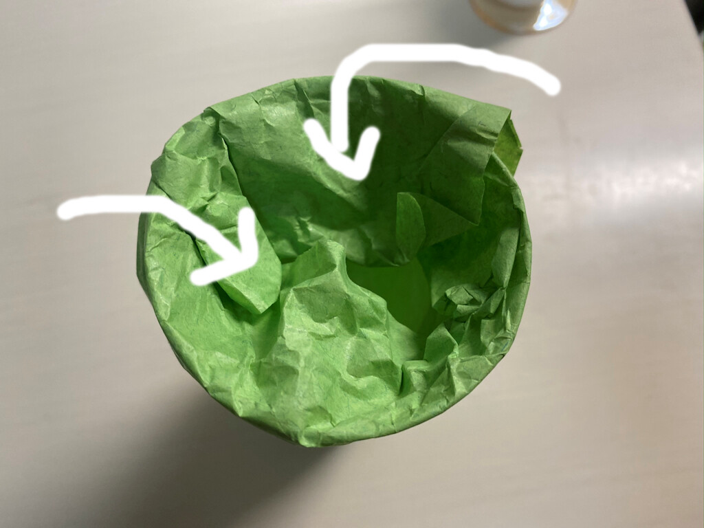 リップ(ワインが入る方)の中に紙を折り込み