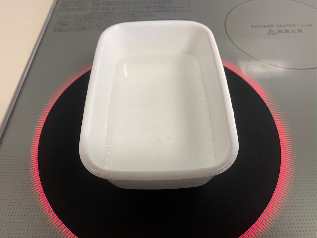 丁度、汚れ取りをしたかった野田琺瑯の容器に水200mlとセスキ炭酸ソーダを入れて