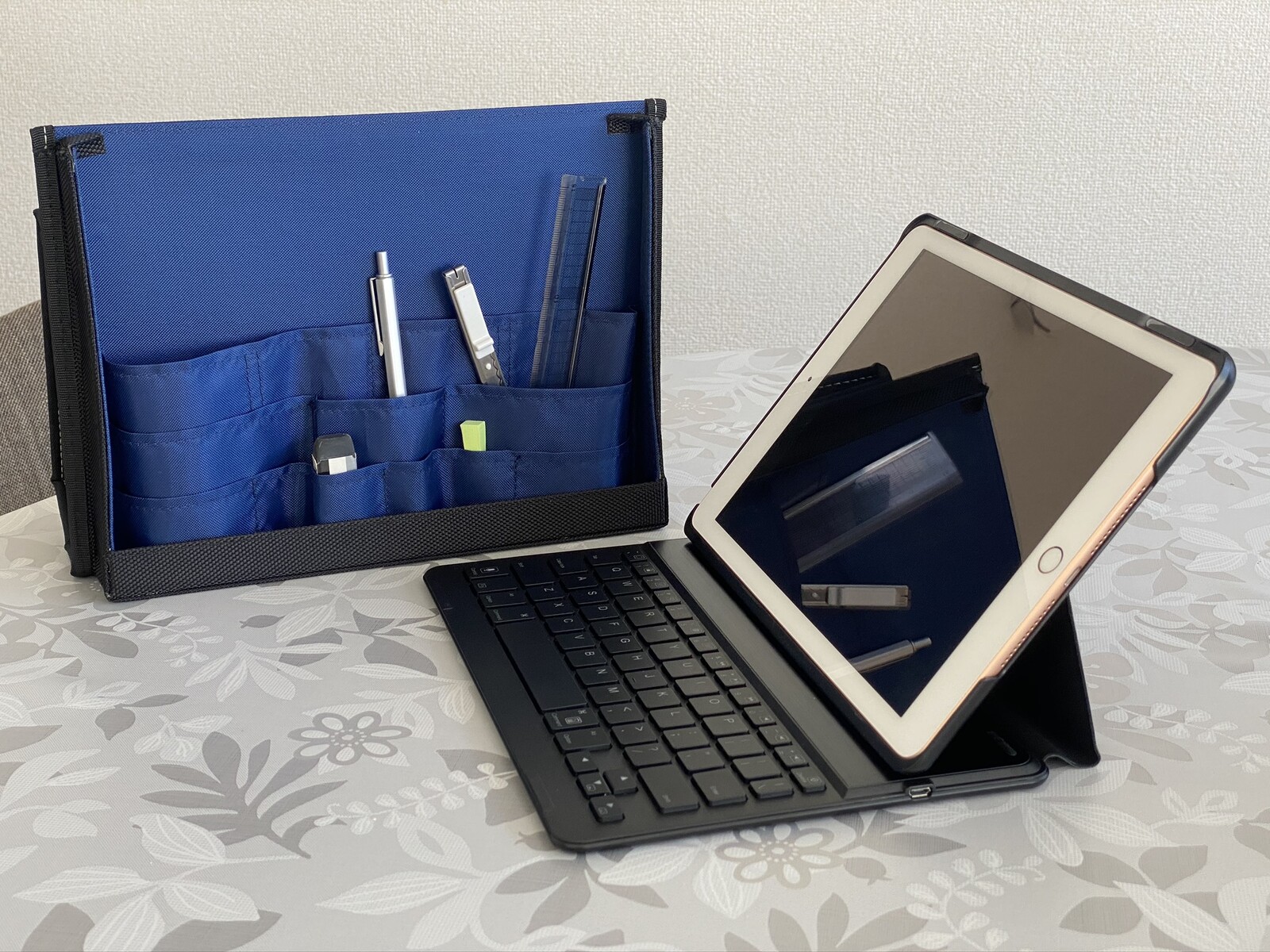 タブレットだけなら薄いので、もっと文房具やPC用品の収納が可能です。