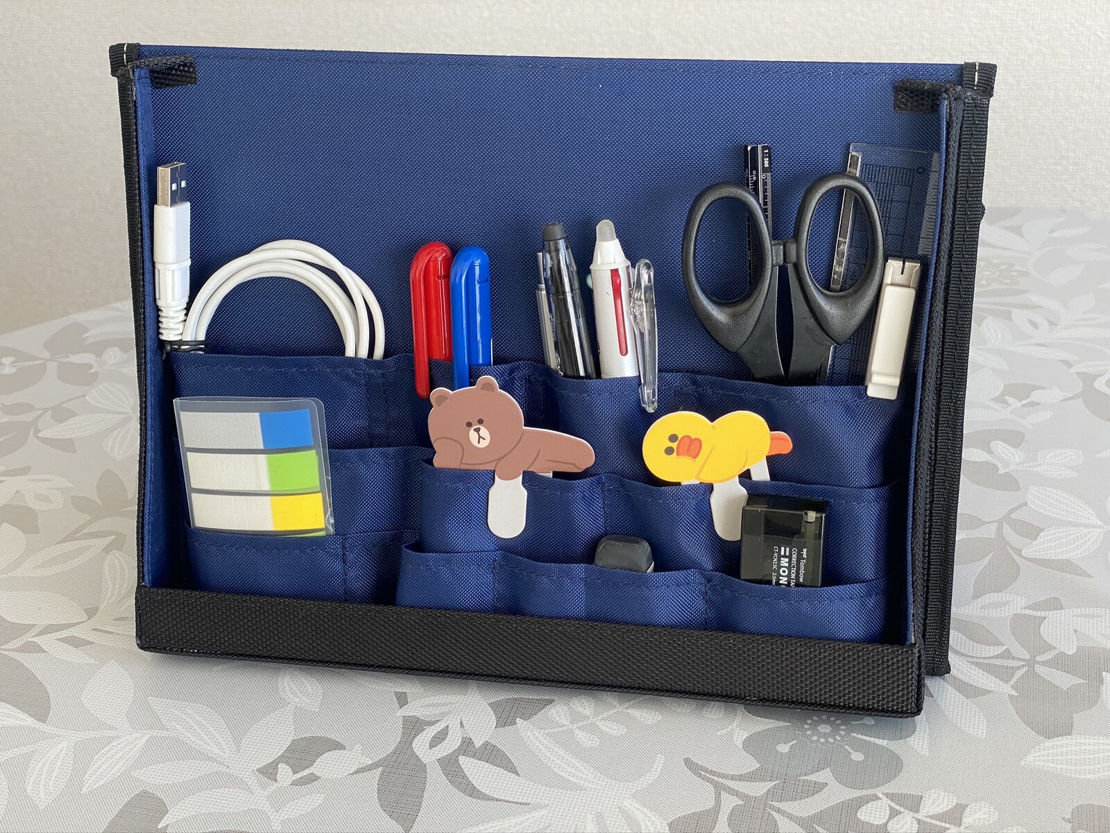 収納しているので厚みがあり文房具が入る量は少なくなりましたが