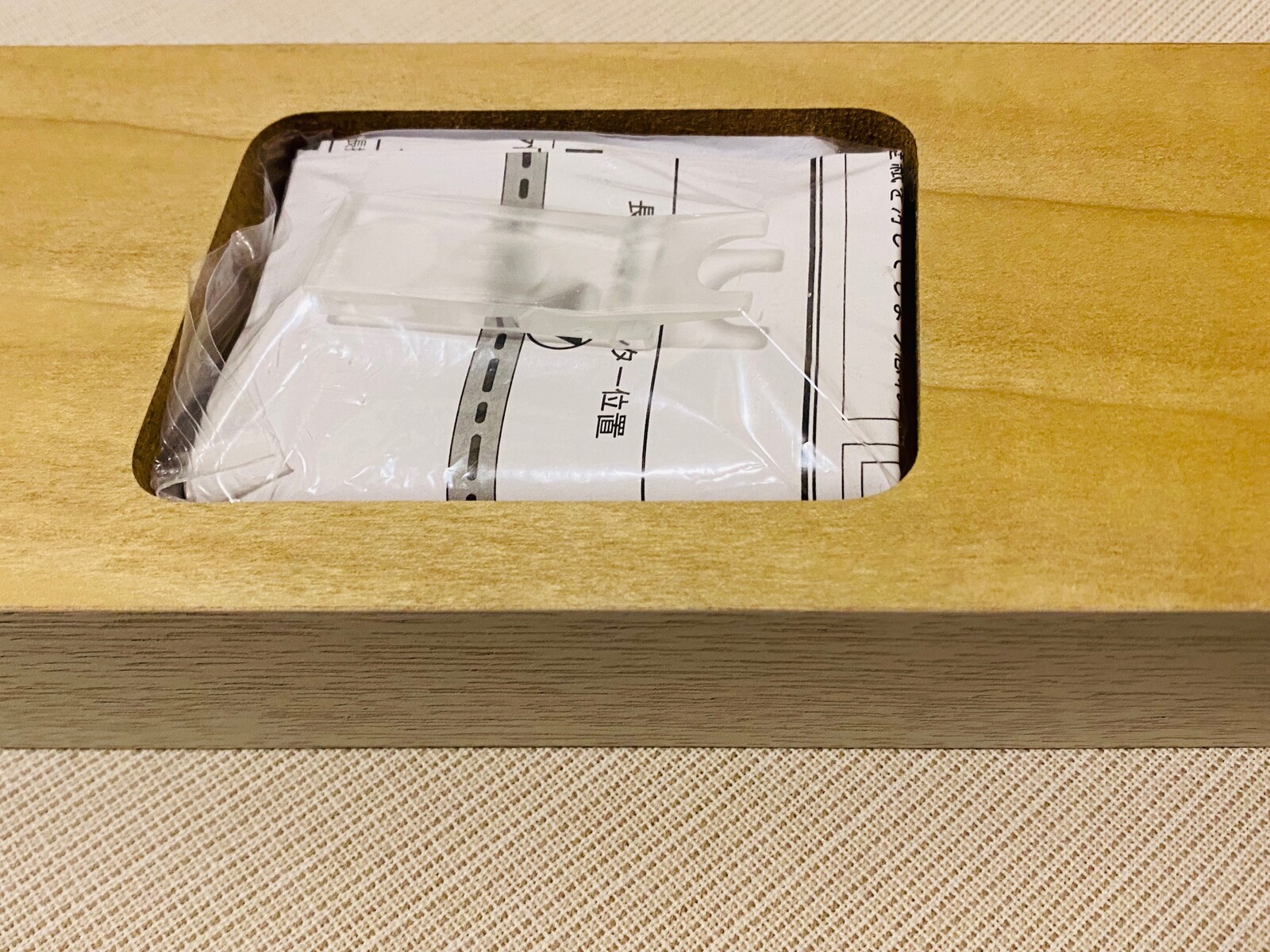 取扱説明書や押しピンを抜く道具などを袋に詰めたモノを穴の中へ・・