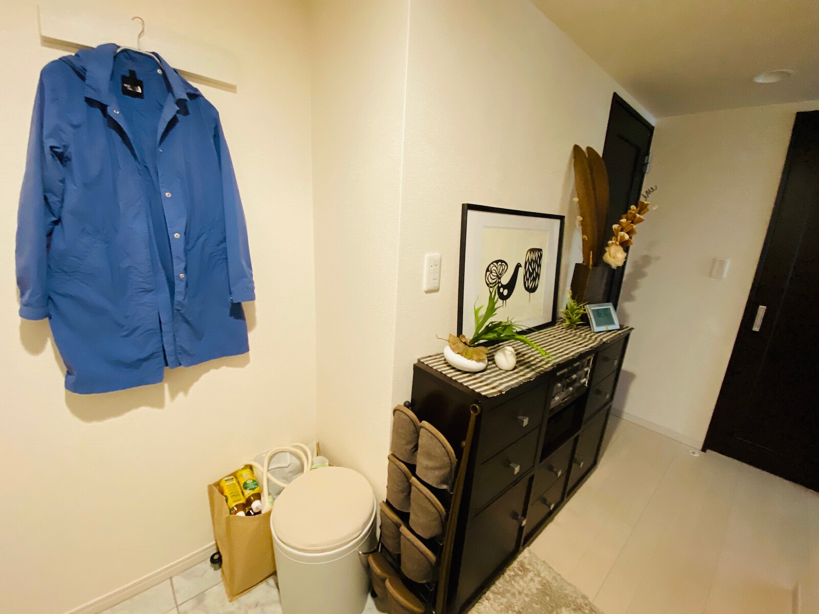 梅雨時期に濡れた衣類なども、玄関に掛ける場所があると便利♪