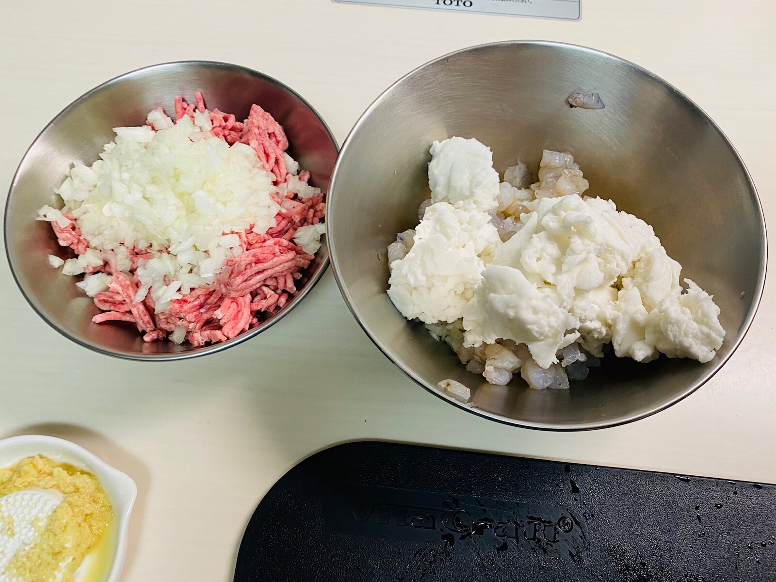 ハンバーグなどのネタをこねる。