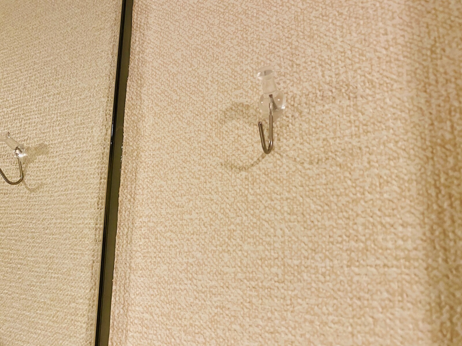 100均のフック付き画鋲にティッシュケースを掛ければ