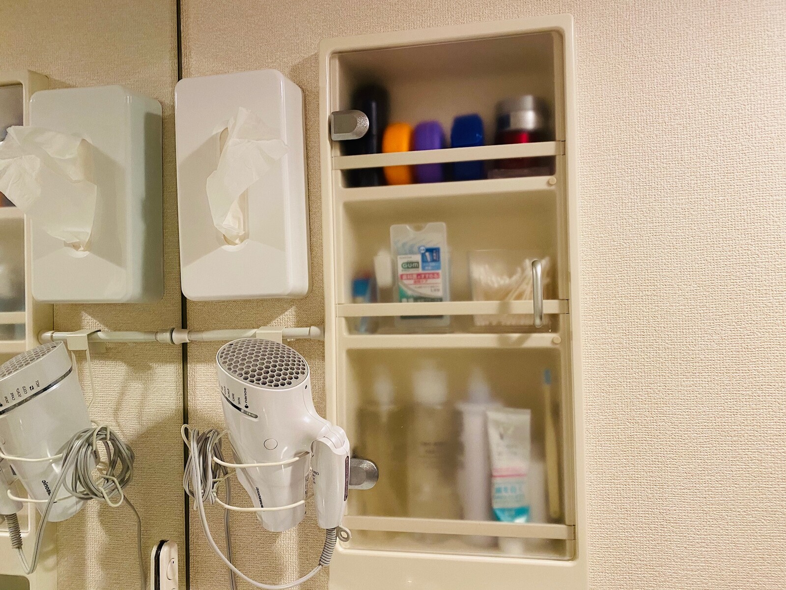 ドライヤーを掛けている上に設置しました。