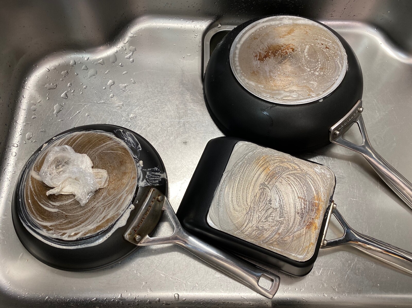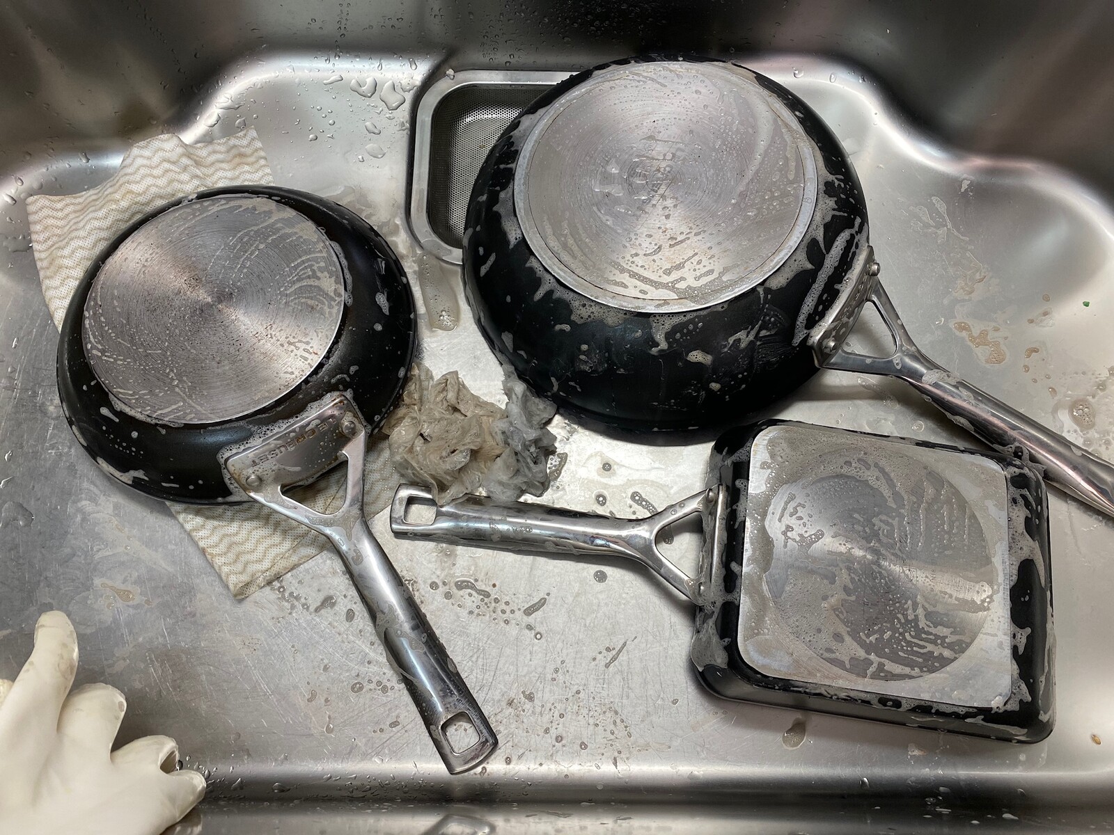 水に濡らしたウエスなど敷いて洗いモノをすると傷がつきにくいのでおススメ d( ̄  ̄)